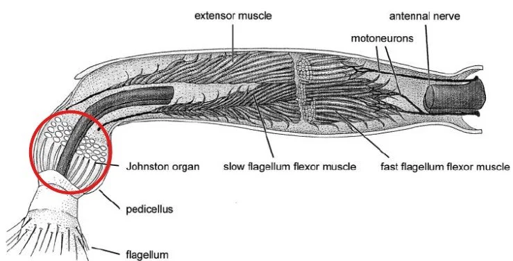 Pszczoły miodne posiadają w czułkach narząd Johnstona (Johnston’s organ, JO), czyli skupisko komórek czuciowych odpowiedzialnych za wykrywanie drgań. Tworzy go ponad 300 neuronów ułożonych w strukturę przypominającą miseczkę, które są bardzo czułe na wibracje i zamieniają je na impulsy nerwowe przekazywane do mózgu.
